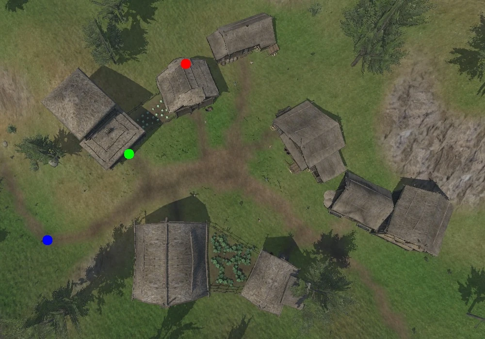 Epeshe is built in a relatively flat area surrounded on all sides by hills and valleys dotted with tall trees. It has a total of seven structures. Two fenced-in fields are growing squash and cabbages. The presence of multiple wagons with several extra wheels and a large amount of wood stockpiled may suggest carpentry as the village's primary source of revenue.