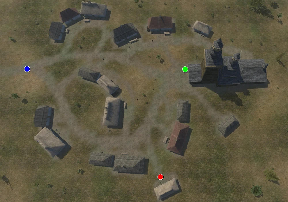 Loknya is a Polish/Cossack-style village with seventeen houses. Opposite the player's entrance is a church, in front of which the Village Elder stands.
