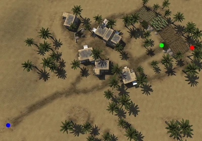 Mijayet is built on a low mound with a shallow valley encircling it and an abundance of palm trees all around. It has a total of six structures. There are four fields here, growing cabbages, grapes, and wheat. A well and shadoof is positioned off to one side of the fields. A horse-driven mill is located near a stable, housing two coursers and a hunter.