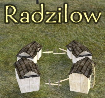 Radzilow is built on flat terrain. It is a Polish/Cossack-style village with fourteen houses, grouped in two or three. In the middle of the village there is a church. There are two horses under a stable.