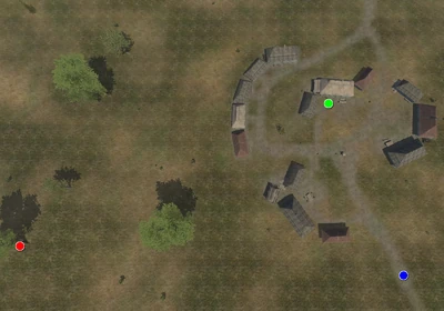 Slavuta is built on flat terrain, as a Polish/Cossack-style village with fourteen houses. A stable shelters two horses, and a shelter covers nine barrels.