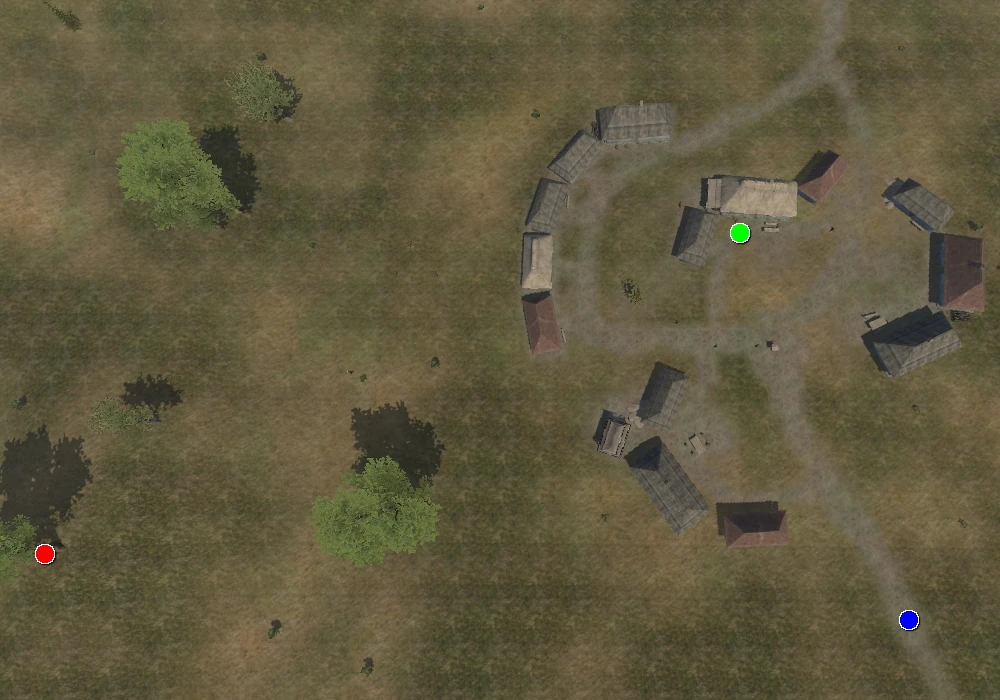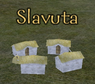 Slavuta is built on flat terrain, as a Polish/Cossack-style village with fourteen houses. A stable shelters two horses, and a shelter covers nine barrels.