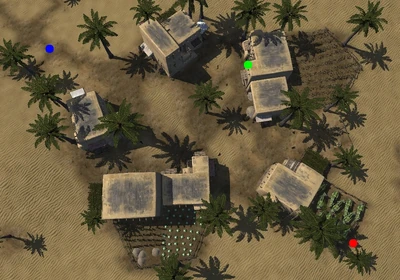 If sent here during a Hunt Down Fugitive quest, the target may be found behind the vineyard on the opposite side of the village from where the player enters, standing near a palm tree.