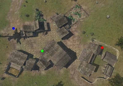 If sent here during a Hunt Down Fugitive quest, the target may be found on the opposite side of the village from where the player starts, standing next to a stone wall.