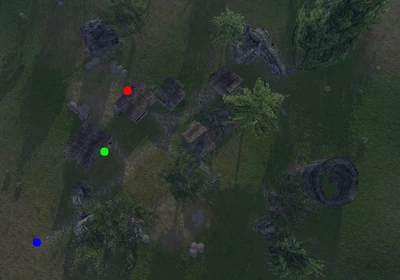 If sent here during a Hunt Down Fugitive quest, the target may be found behind the second building on the left from where the player enters, near some bushes in one of the cleared fields.