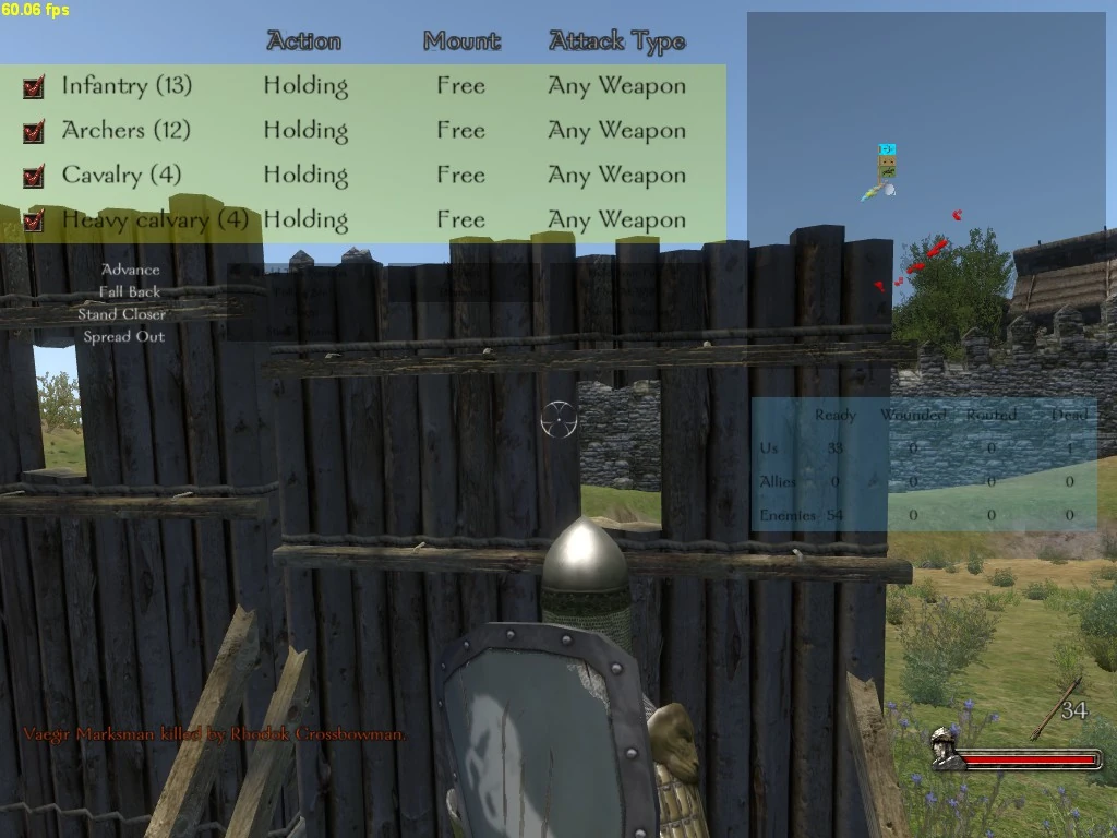 Example: If you want to archer duel with the castle/town you are sieging, just move up your archer units to the topmost position possible in your party.