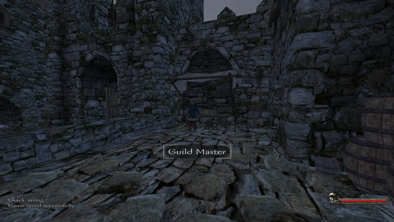 The Guild Master for Veluca is located behind and to the right of the player, up a small set of stairs when 'Take a walk around the streets' is selected.